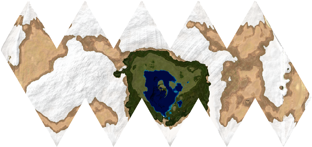 Olkennedy: Planetary icosahedral map of the famous crater and the volcanic uplands. |